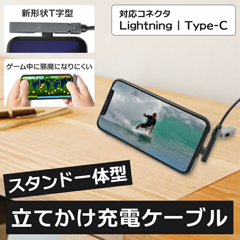 TSdrena スマホスタンド 充電 ケーブル 一体型 卓上 スタンド [ Lightning / Type-C コネクター] 携帯スタンド SPM-TCB