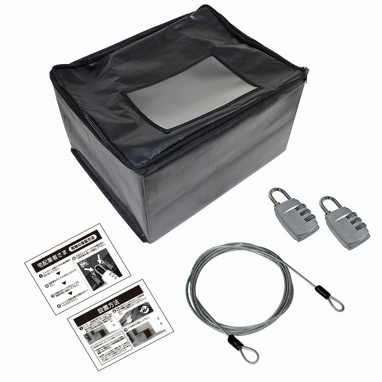 商品名 宅配ボックス ソフトタイプ ダイヤルロック付き 商品内容 ・留守中でもお荷物の受け取りが可能に! ・たっぷり入る70Lの大容量設計 ・ワイヤーとダイヤル錠で盗難も防止。